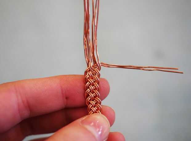 Para empezar atando sus extremos, asegúrese de que su trama grupos están todos apuntando en la misma dirección, y que está ampliando su grupo de deformación al lado, como se muestra en el cuadro 1. A continuación, tire suavemente de su grupo urdimbre alrededor de sus grupos de trama, cubriéndolos completamente. Envuelva al menos dos veces el grupo urdimbre alrededor de los mechones. Puede envolver más, según lo que desee sus extremos finales para parecerse a. Sin embargo, no recomiendo menos de dos vueltas, como un abrigo tiende a ser un poco inestable.