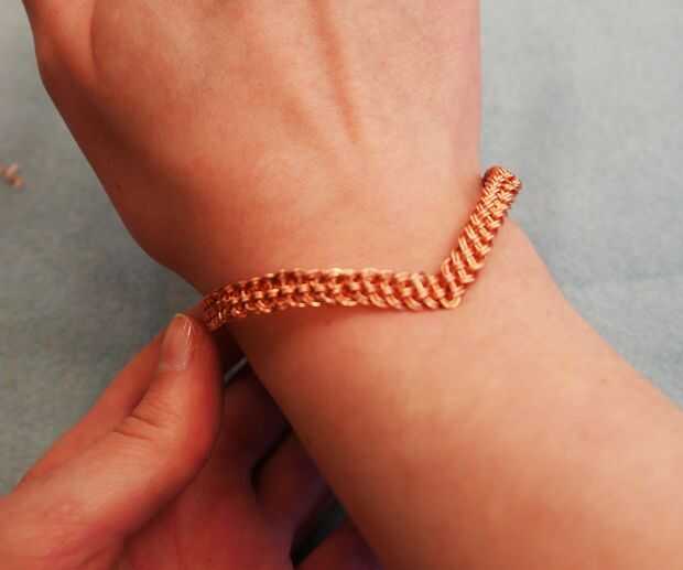 En el cuadro 1, ves la pulsera en forma antes del ajuste. Ahora, todo lo que queda es para que ajustar la pulsera a la muñeca. Mi muñeca es muy pequeña, así que terminé apretando un poco la pulsera. Pero, desde que hicimos la pulsera con tanto material extra, hay mucho espacio para respirar para aflojar así.