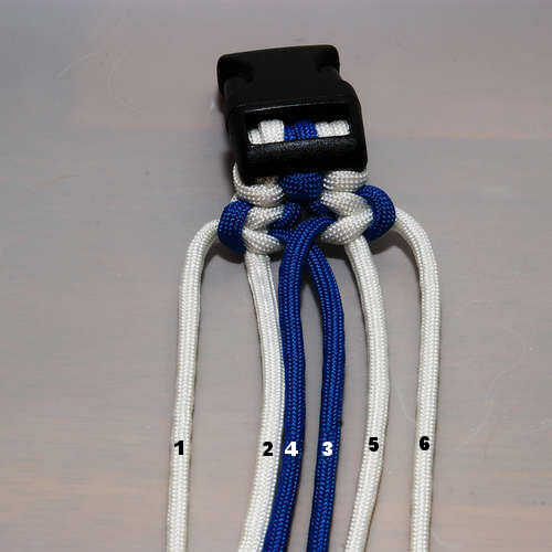 Cuando se repite este paso para cada los otros conjuntos de nudos, acuérdate de cruzar los cordones siempre de la misma manera. Esto hace la pulsera se vea más aseada.