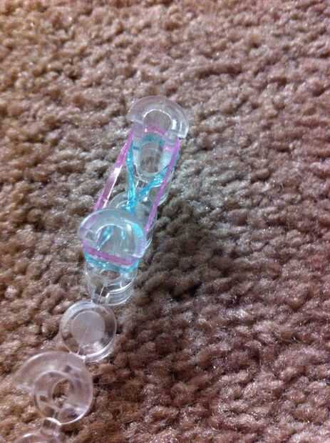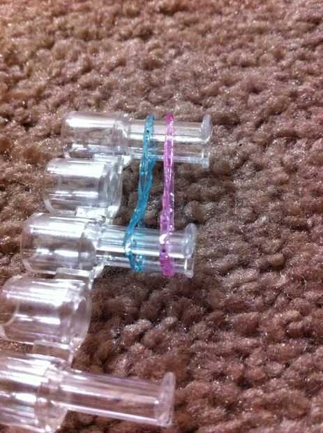 así es como luce la pulsera de cola de pescadoPaso 1: Tomar una de sus bandas de goma y enrosque en un ochoPaso 2: Colocarla en el telarPaso 3: Añadir una banda elástica que no se tuerce en un ochoPaso 4: Agregar otra banda de gomaPaso 5: Tomar su ga