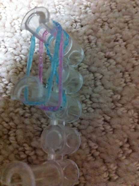 así es como luce la pulsera de cola de pescadoPaso 1: Tomar una de sus bandas de goma y enrosque en un ochoPaso 2: Colocarla en el telarPaso 3: Añadir una banda elástica que no se tuerce en un ochoPaso 4: Agregar otra banda de gomaPaso 5: Tomar su ga