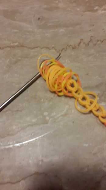 Esto es un poco tedioso, hacer constantemente bandas como en la foto, y algunos se caen. Tienes que aplastar mucho, así que si pones la pulsera en el, no se mostrará la cadena sola.
