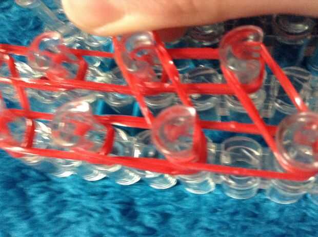 Ahora agregar 3 bandas pasando al otro lado de las clavijas, asegurarse de que está torcidos una vez, como bandas de tapa.