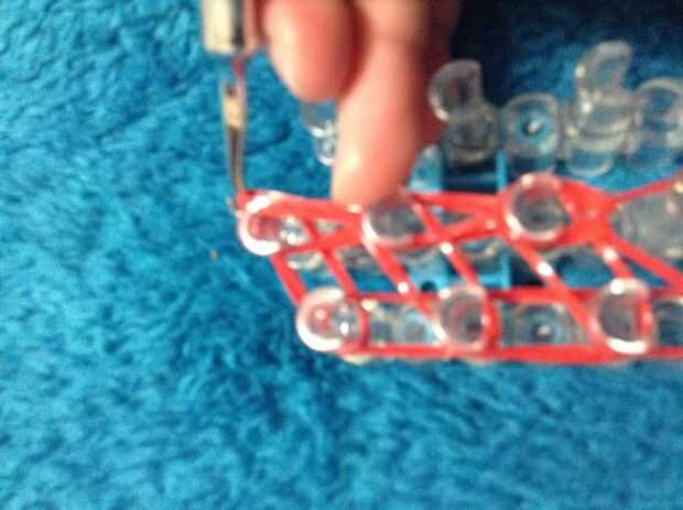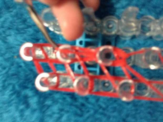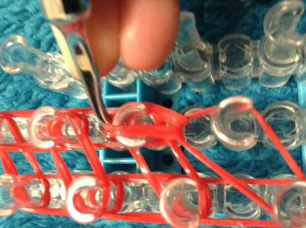 Ahora ir a la izquierda y el gancho de la banda de la tapa y continuar hasta has gancho todas las bandas de 3 en esa fila.