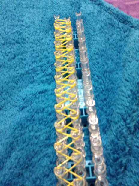 Coloque las bandas como haría con una sola zigzagueando hasta el fondo de su telar.
