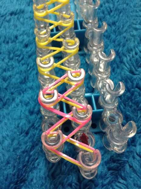 esto es una pulsera tan de moda! Hay muchos diversos patrones se pueden utilizar para esta pulsera: arco iris escalera, escalera de camuflaje, sólo para nombrar unos pocos!* nivel: intermedio *Paso 1: Colocación de las bandas Paso 2: Engancha la medi