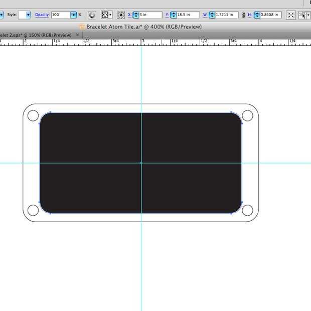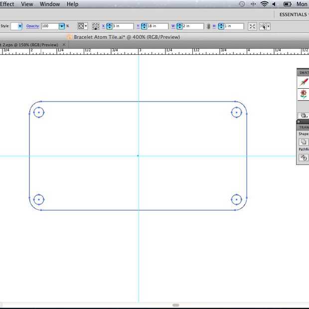 1. Hacer un rectángulo con esquinas curvas 2 pulgadas por 1 pulgada.