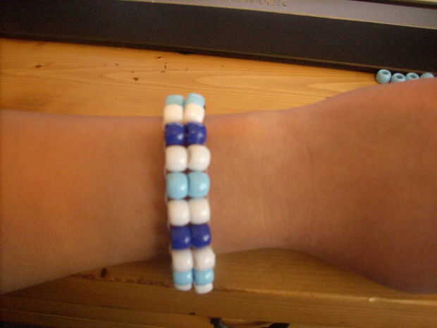el cable a través de la primera fila que hiciste de la secuencia del mismo modo que sería añadir otra fila a la banda. esto traerá las filas en un círculo. Ate los extremos juntos en un nudo.