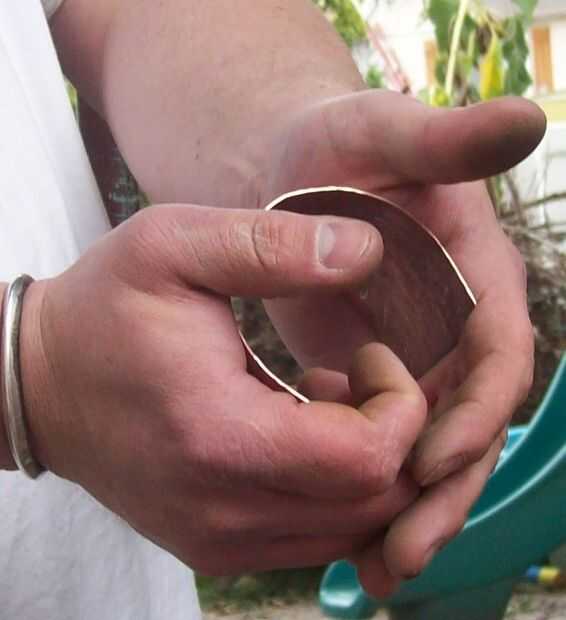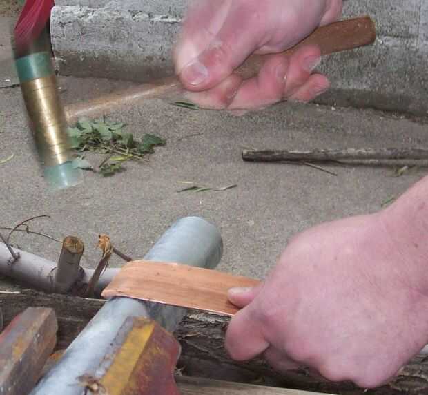 Obtener una pieza de gran diámetro de tubo de acero o de hierro para su vástago. Usando el martillo de cara suave, empieza a doblar el borde del brazalete. Uso sostenido huelgas superpuestas a lo largo de la anchura del cobre para iniciar la curva de cobre. Parecerá mucho más suave cuando se completan. Una vez que el cobre tiene un poco de curva, tomar el metal en la mano y manualmente poner una curva más aguda en el metal simplemente doblándola cuidadosamente. Esto es mucho más rápido y más fácil. A partir de ahí pone el cobre curvado (ahora mucho como un puño) en el mandril y martillo liso y simétrico de las piezas de la pulsera que parecen fuera de lugar hasta que se ve todo correcto. O por lo menos, justo lo suficiente para usted.