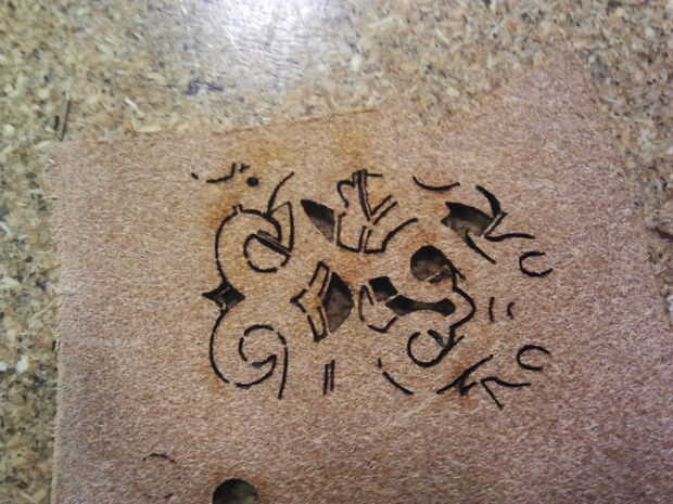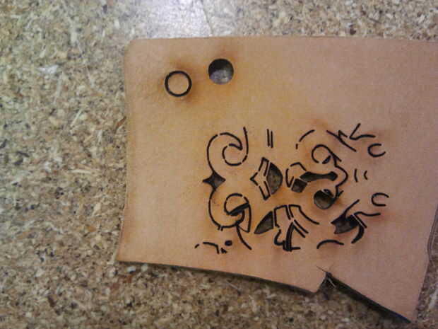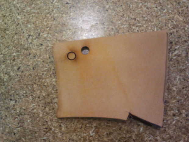 Obviamente es mucho más denso que el cartón, cuero, así que quería hacer varias pruebas para asegurarse de que el láser iba a través de todo el camino. Empecé con un pequeño círculo, restaurar todos mis especificaciones de materiales de cuero y realinear todo en la máquina.