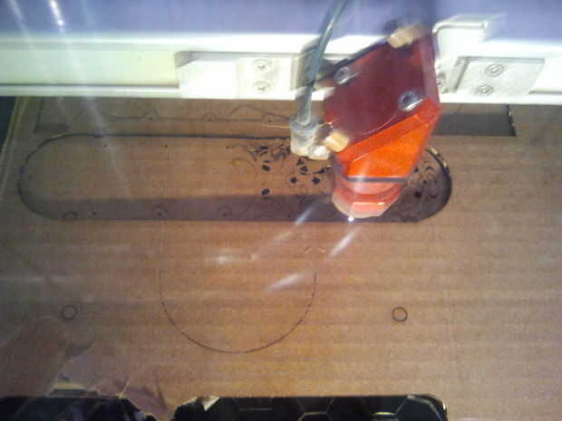 Foto 1-laser haciendo su cosa - parte sin duda más emocionante! Es muy rápido y chispea un poco como va :-)