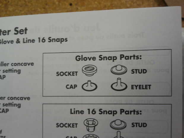 Broches son un poco más complicado que los remaches, pero no por mucho. Cada uno tiene 4 piezas. Usaba guantes de encaje. Su setter complemento vendría con información sobre qué tipo de complemento conjuntos y un diagrama para ir con.