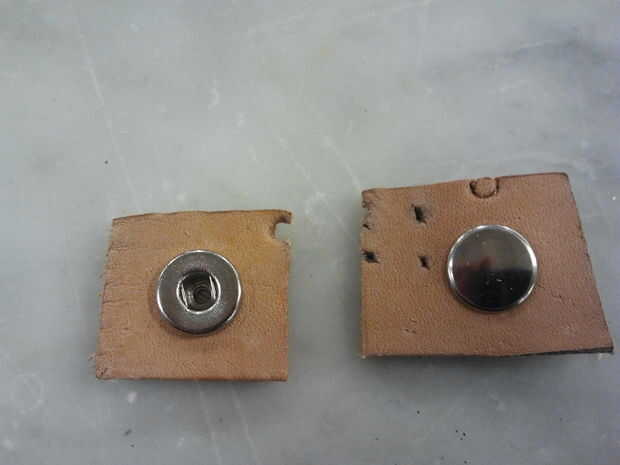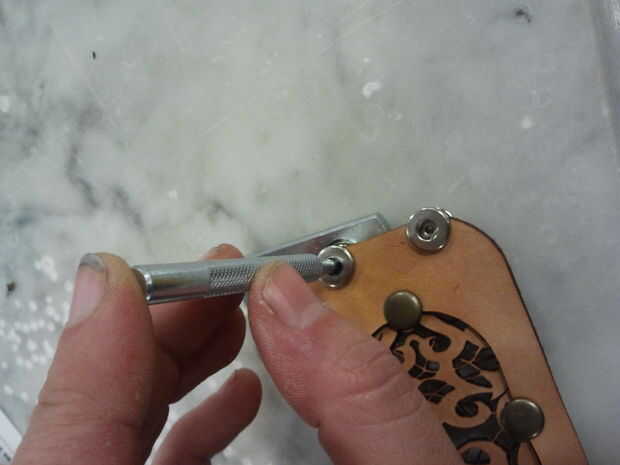 Primero había perforado los agujeros para los broches de presión.