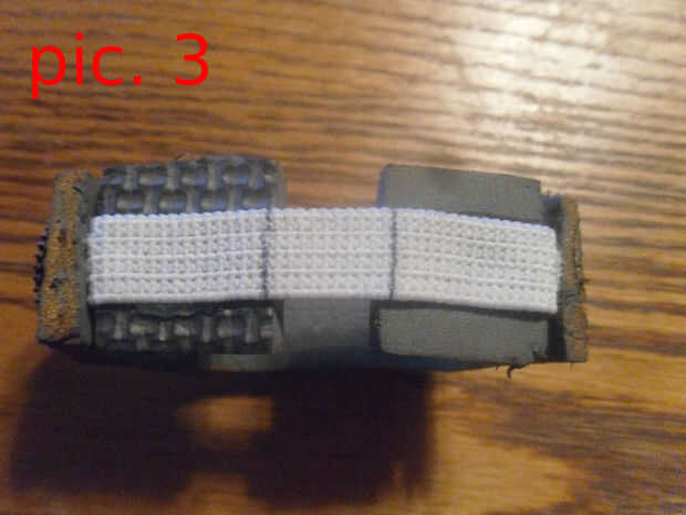 (Opcional) Si tu pulsera es perder puede tome un pedazo cuadrado de espuma, cortar por la mitad y pegar en la correa (fotos. 2 y 3)