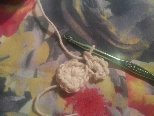 Después de su primera cadena de círculo 2. Inserte el gancho de ganchillo en la segunda puntada de gancho. Completar 6 crochets solo en ese punto, luego a su trabajo para que el primer círculo está ahora a la derecha. Ahora hago 6 que ganchillos más solo en la misma puntada no se afilian. Eso es él!