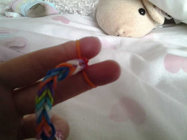 esta es una manera fácil y divertida para hacer una pulsera de cola de pescado!Paso 1: materiales Todo lo que necesitas son-2 dedos-bandas de telar del arco iris-una 'c' o de ' clip-pacienciaPaso 2: a partir de Tomar una banda y hacer y signo del inf