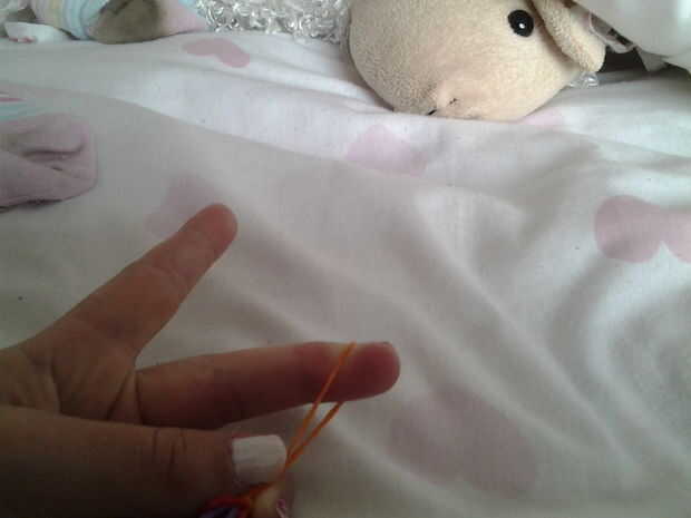 Paso 1: Materiales necesarios 1. gomas de telar del arco iris2. un brochePaso 2: Tomar una goma y cruzar sobre su dedo índice y pulgar.Paso 3: Poner otra banda con los mismo dedos pero no cruzarlo.Paso 4: Tire de la primera mitad el cruzado de la gom
