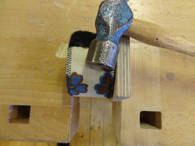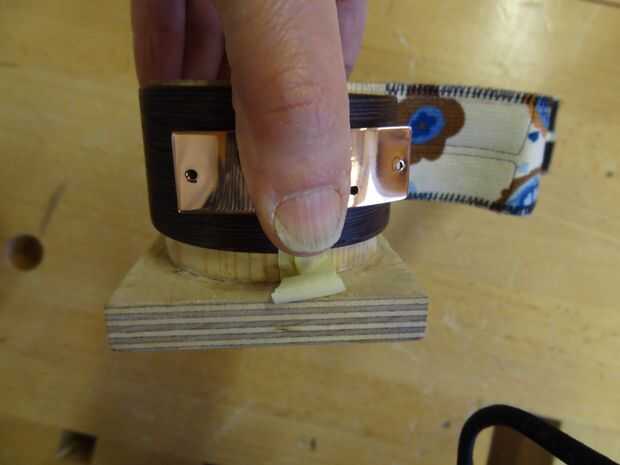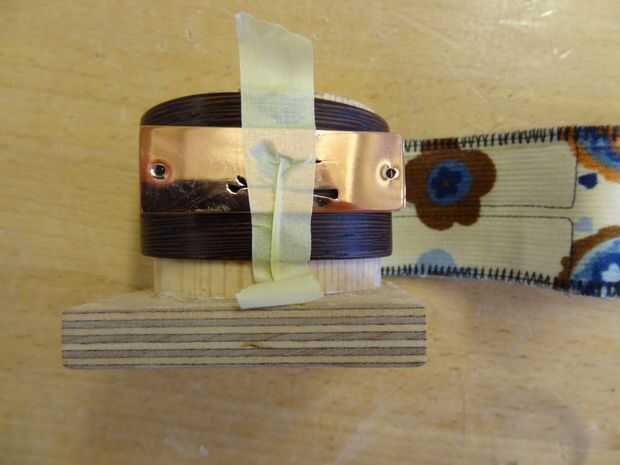 5 la placa de cobre rígido y suavemente no seguirá la pulsera. Utilice un martillo para ajustar la curvatura.
