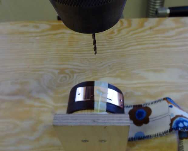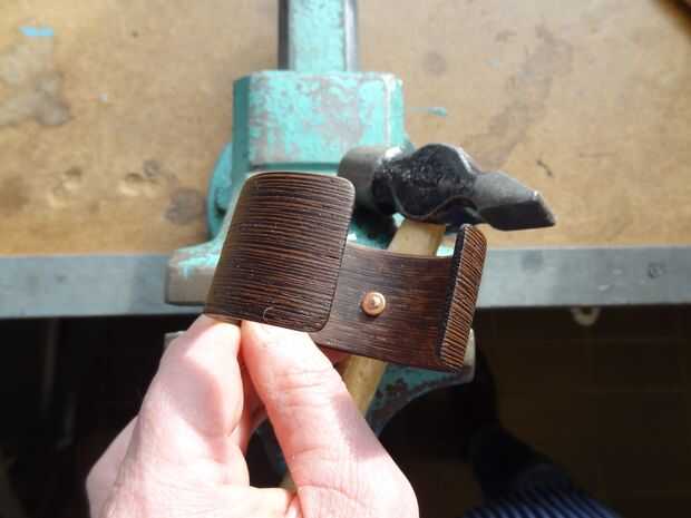 3 Coloque la placa de cobre en la pulsera y colocar los remaches en los agujeros.