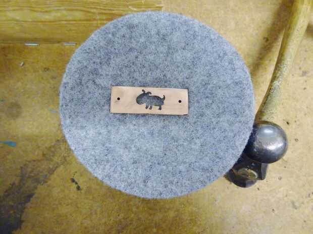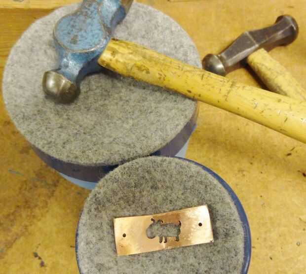 el cobre con las manos pero eso no fue suficiente para el curviture de la pulsera. He utilizado un martillo de pin ball y la herramienta en la foto de arriba me siento yo no sé el nombre y no lo encuentras en la web. Si usted ayudará me sienta por favor libre; ) También se puede utilizar una depresión en un bloque de madera.