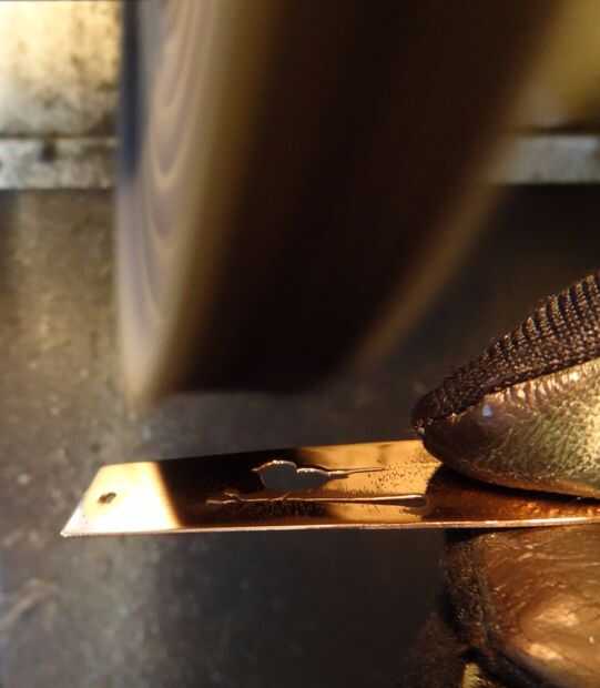 La placa de cobre es dejar de fumar suave así que usé un trozo de madera para apoyar la placa de cobre mientras que el pulimentar.