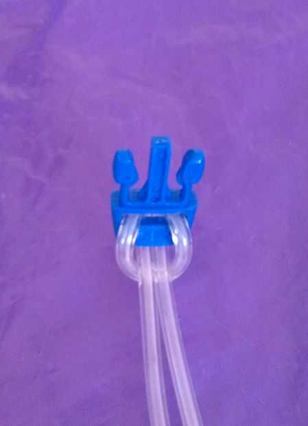 Inserte el tubo en la mitad masculina de la hebilla, del mismo modo se muestra en la fotografía.