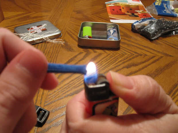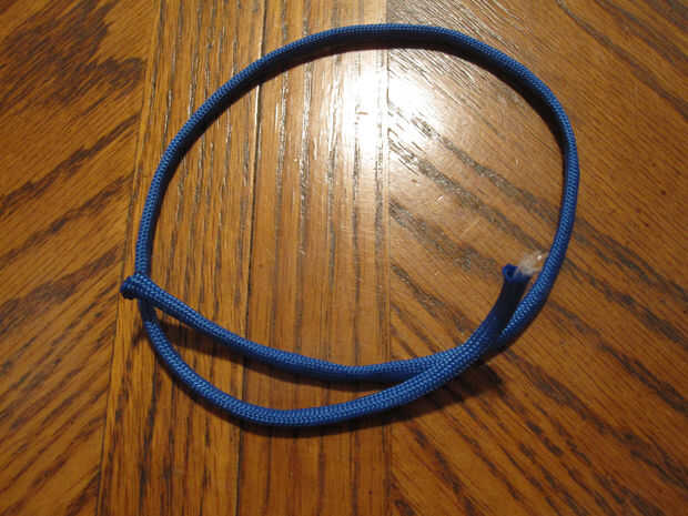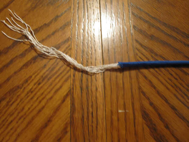 Después de cortar el paracord, corte los extremos fundidos "desentrañar" y extraiga los hilos internos blanco de la paracord. Mantenga estos filamentos, como necesita uno más adelante. A continuación, pasar los extremos de la paracord sobre la llama de un encendedor para evitar que los extremos se deshilache demasiado.