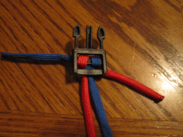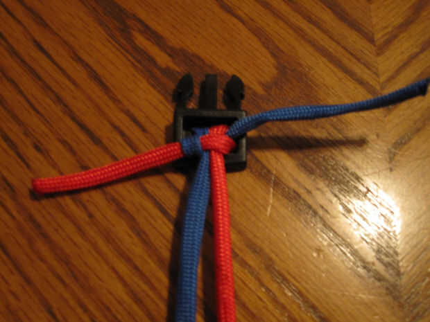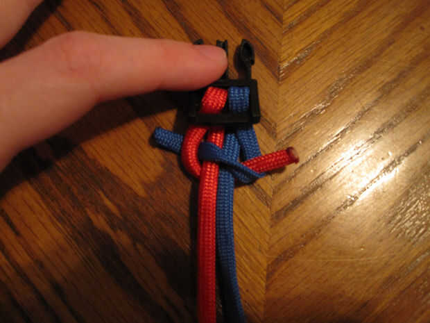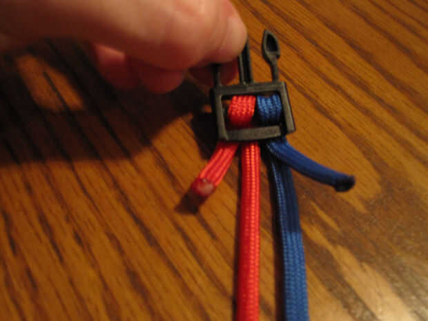 Ahora es la tarea un poco difícil de fijar el otro extremo de paracord para la segunda pieza de la hebilla. Ahora, como mencioné antes, al final de este proyecto encontré que era un poco corto de paracord en la pulsera, usé dos otros pedazos de cuerdas para demostrar el nudo que vamos a utilizar para terminar la pulsera.