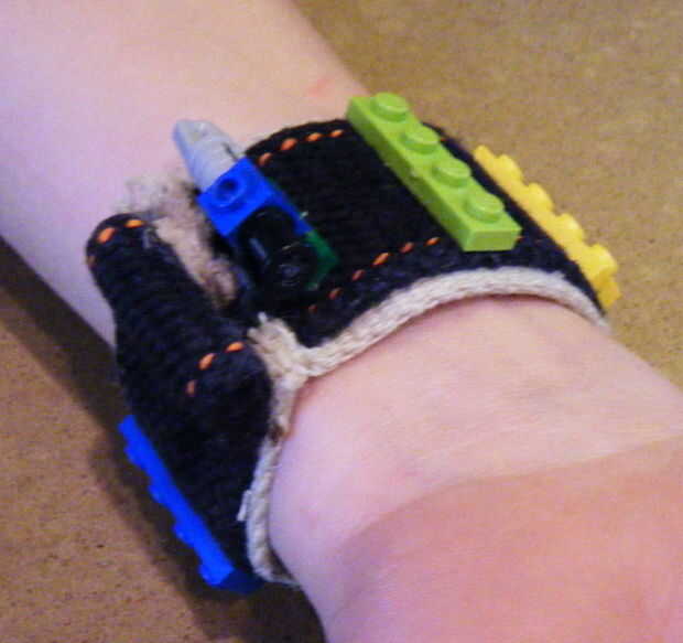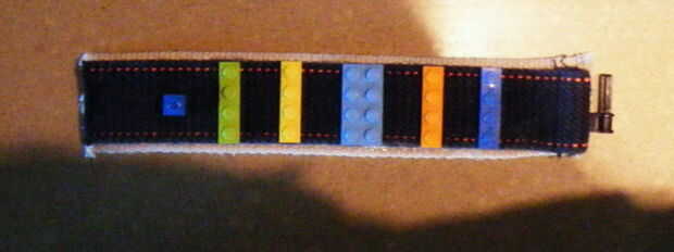 Ahora el pegamento en la otra parte del cierre que es la pieza azul de un montante con el agujero. (el agujero debe ser redondo no más en forma) Buscar el lugar adecuado en muñeca de ponérselo y deslizarse el pedazo de agujero a través de la otra pieza de cierre y hacer una marca en la pulsera de donde ponerlo. Llenar un poco el interior con pegamento del gorila y poner pegamento en los bordes. Se ha cambiado el aspecto de la hebilla para que funcione mejor mediante la adición de un 2/1 con un montante en la parte superior. Para agregar los ladrillos lo mismo que la parte azul de la hebilla. Añadir una pieza de cierre uniendo una pieza con un agujero más en forma a la pieza técnica. (cuando digo fije una pieza en que no quiero decir que pegamento. Porque usted quiere ser capaz de quitar)