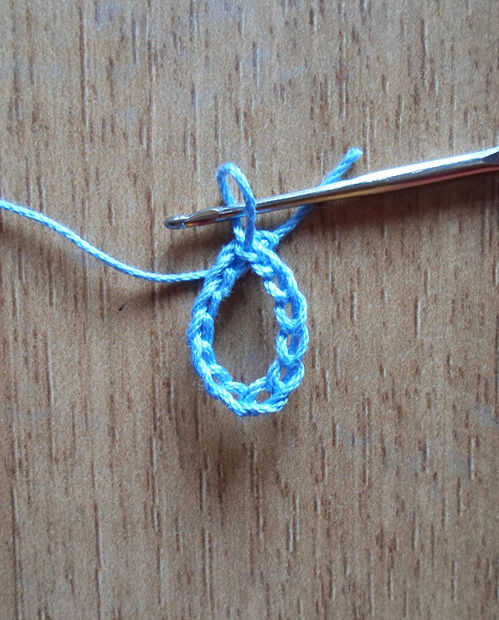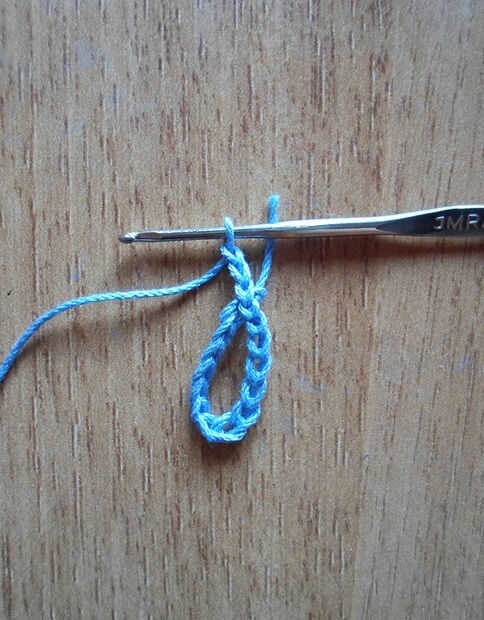 Puntada de resbalón en la tercera cadena que hiciste anteriormente.