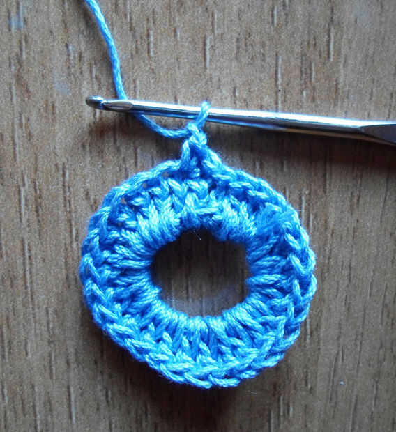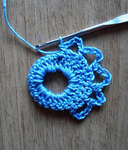 Por lo tanto, la cadena de 6 y gire. Hacer un sc en el tercer sc de la hilera anterior.