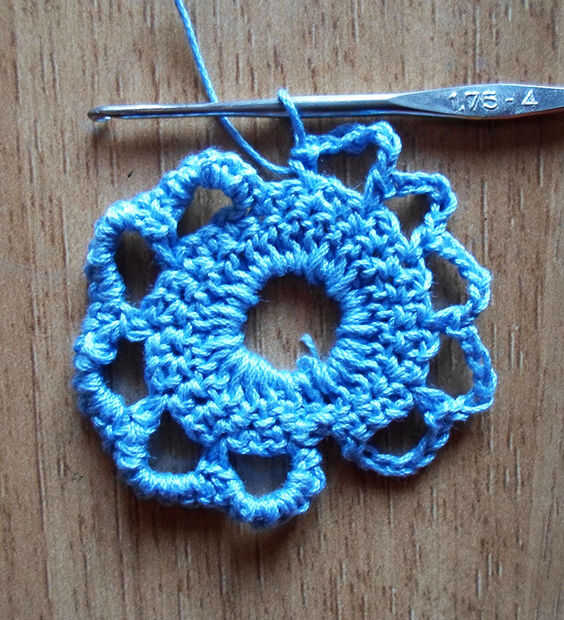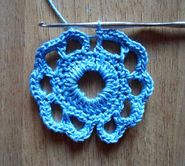 Cadena de 6 y hacer una sc entre todos los pétalos al igual que usted hicieron antes.