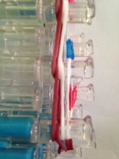 Aquí es el final :)Paso 1: Poner a las bandas!! Bien, va a tomar su primera banda y ponerlo en una diagonal desde la primera fila media.Paso 2: Más bandas :) Ahora, poner la siguiente banda en la misma primera fila, medio peg directamente diagonal de