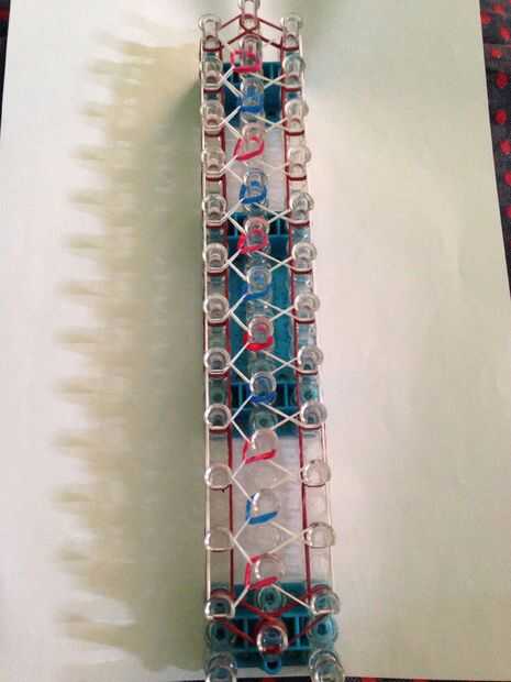 este patrón es muy fácil creo. Básicamente sólo repite sí mismo. Su un poco más gruesa que la pulsera de telar solo arco iris.Usted necesitará• arco iris telar (o cualquier otro telar)• gomas• un gancho• C-clip o pinza S(Quizá quieras tenerlo en una