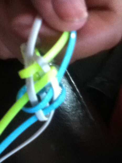recibió una solicitud para hacer un tutorial de esta pulsera y finalmente consiguió a él jajajaPaso 1: fuentes de Te necesita:Cable trenzadoTijerasPaso 2: Desea obtener los dos cables que elegiste y atarlos juntos realmente apretado así no desmoronar