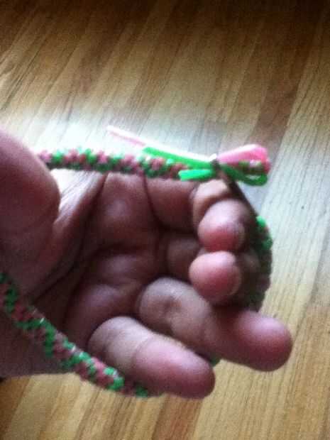 es fácil de aprender y rápido de hacerPaso 1: Lo que usted necesita-2 colores de cable para-tijeras o cuchillo-más ligero-reglaPaso 2: paso 1 tomar un pedazo de cordón para doblar a la mitad y tratar de él en tu muñeca si cabe añadir aproximadamente