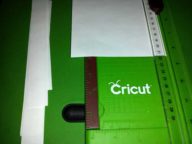 1. Cada una de las hojas de papel de copia normal cortar 11 tiras de 1". (tiras de 22 en total)