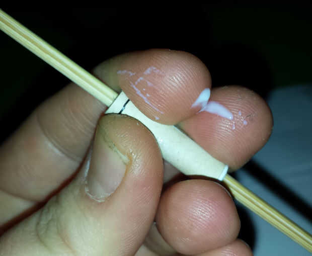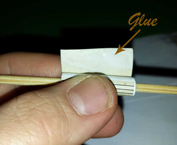 5. Aplique una pequeña cantidad de pegamento al final de la tira que está frente a usted (el lado en blanco).