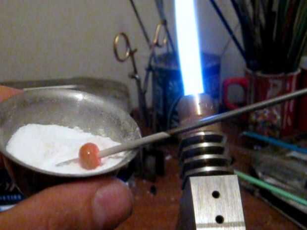 - Si el grano es asimétrica, calor a fundido en la llama, rodando constantemente el mandril y dejar enfriar