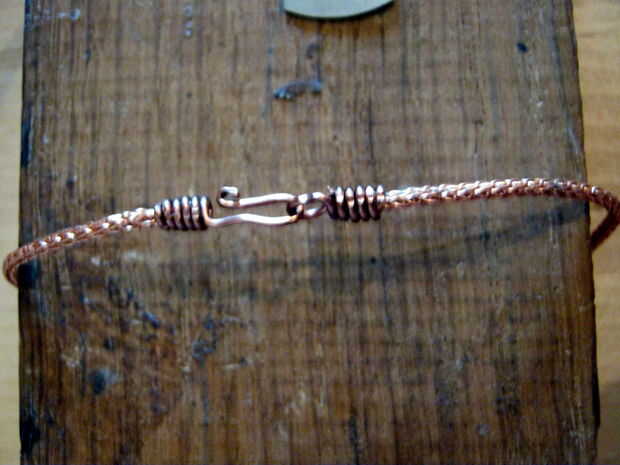 La hebilla está hecha de un alambre más grande, un clip también funcionaría. Poner 4 vueltas alrededor de su vástago, luego forma un ojal en el extremo. Hacer lo mismo otra vez para la otra mitad, pero esta vez forma un gancho en su lugar. Una vez que tengas tus cuentas ensartadas en la cadena, mezclar una gota de epoxy y sumerja la punta de la cadena en él. Luego introduzca la cadena en el extremo en espiral de la hebilla y doble sobre la cadena con un par de pinzas. Una vez seco el epoxi, está listo para dar a alguien como un regalo hecho a mano, o llevarlo usted mismo!