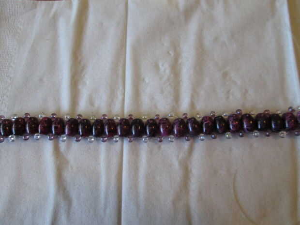 Repita los pasos 4-6 hasta llegar a la longitud que usted necesita para ir alrededor de su muñeca.  He utilizado 23 centro granos y 46 lado granos.