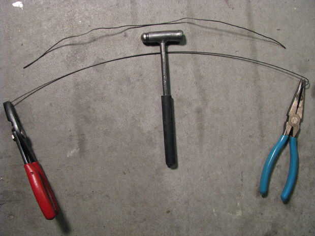 Usé mi martillo mientras camina en él. Esto ayuda a straiten el alambre hacia fuera para el siguiente paso.