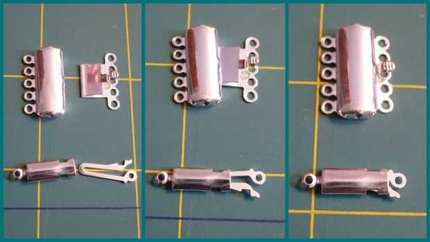 b. diapositiva strand múltiples cierres de bloqueo. Son super cool y fácil de tomar y apagar uno entregó. También recomendamos usar hebillas de tipo "ficha", pero sólo si usted puede encontrar unos donde está la ficha en la parte superior, no el lado. Ver las fotos para más detalles. Otros tipos de cierres comunes se incluyen en los cuadros, pero no recomendamos estos para pulseras. Son muy difíciles de utilizar una mano.