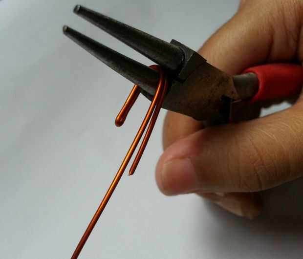 Dejar 3-4 cm del alambre recto y luego doblar el alambre,