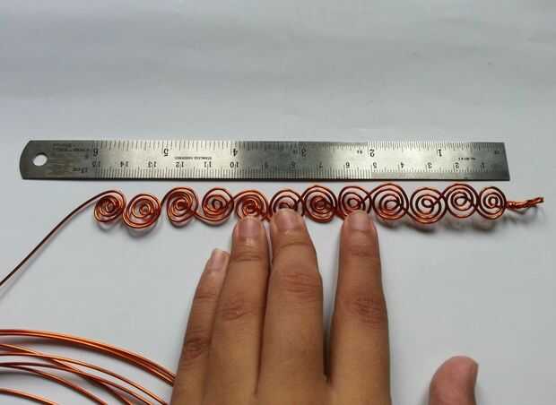 Cuando usted pensará que usted ha hecho suficiente remolinos para la pulsera mantenga recta con una regla para comprobar si el tamaño es adecuado.