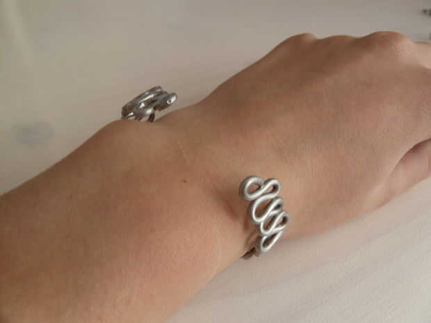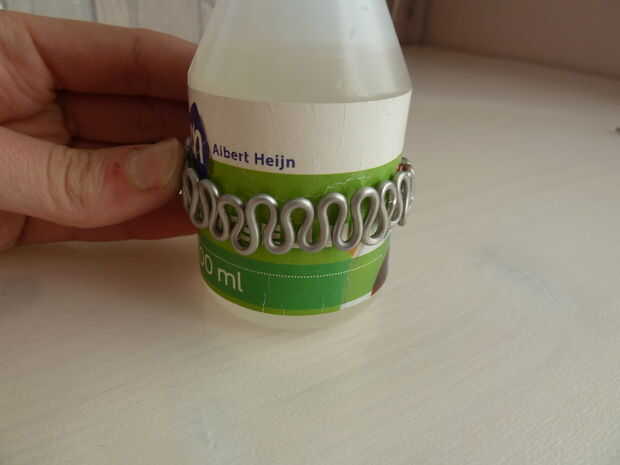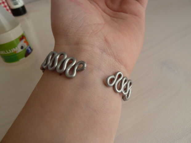 Ahora que termine el doblez de la pulsera, es hora de darle forma. Tome el objeto redondo que es más grande que la muñeca y envuelva el brazalete alrededor de él. Después de esto, usted puede hacer algunos pequeños ajustes en la forma a la muñeca.