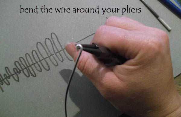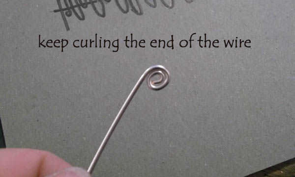 Siguiente usando la punta de los alicates de punta redondeos comenzar tu primer Rizo, se trata de una apretada para sobrehilar el final, rodarla alrededor de cerca de 2 veces (ver foto)