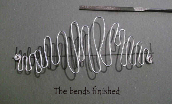 Ahora la diversión comienza, usted puede ser tan libre como te gusta con tus garabatos, calcular la profundidad desea que la pieza a ser y a partir de pequeños utilice el extremo de los alicates a la primera curva, la forma como consiguen más grandes entonces usted sólo puede doblar alrededor de los dedos como el alambre es muy suave, cuando rech la marca de la mitad empieza a disminuir el tamaño y que llega al final corte el cable (recordar dejar lo suficiente para hacer el enrollamiento apretado otra vez) y liso del final como lo hizo al principio, y luego otro enrollamiento apretado para acabar con la forma.
