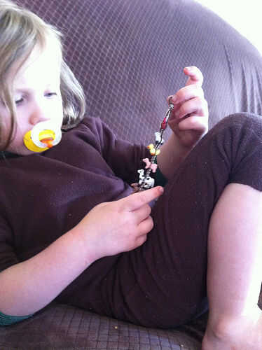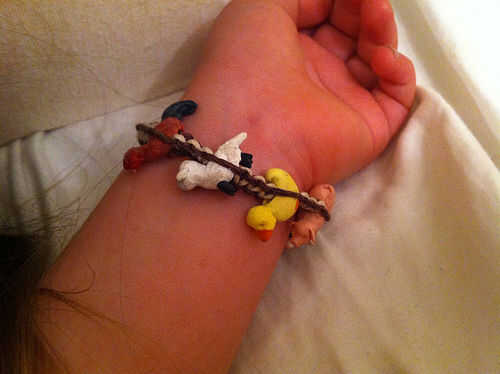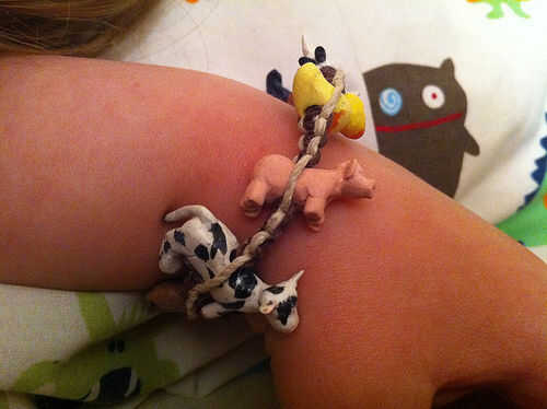 Ama a los animales de granja y los sonidos que hacen, así que decidí hacerle una pulsera de animales de granja.