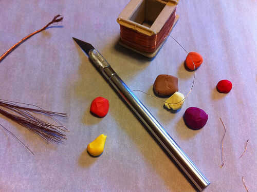 Arcilla del polímero es barato y fácil de trabajar, pero pueden presentarse problemas de hacer diminutos animalitos. Un extremo es aplastado mientras trabajas en otro. Me di cuenta de quienes hacen muñecos de barro hornear a menudo las muñecas en etapas, por lo que he utilizado este concepto para hacer los animales en las partes y evitar el problema pegajosos.